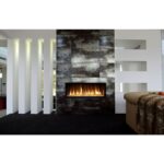 GreenSmart™ 2 system Beautiful crushed glass floor Twin 90 CFM blowers Huge glass viewing area Heats up to 195 Sq Metres* Ten accent lights under the glass floor Heavy steel construction that includes a heavy-duty 10 gauge welded glass frame Protective safety screen over the glass Six adjustable levels for fan, lights and flame The 4415 HO gas fireplace brings you the very best in home heating and style with its sleek, linear appearance and impressively high heat output. With a long row of dancing flames and built-in fans, the 4415 is not only an excellent heater but a beautiful focal point in your home. Turn on the under-lighting that shines through the translucent glass floor and you’ve got magic whether the fire is on or off. This sophisticated fireplace can accompany any architectural style with a selection of fireback options along with realistic Driftwood and Stone Fyre-Art. *Heating capacity varies according to the size of closed off area, ceiling height, floor plan, insulation and outside air temperature