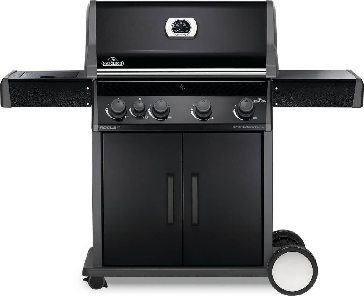 High-quality grilling at an affordable price, the Rogue?? 525 Propane Gas Grill with Range Side Burner by Napoleon is a versatile addition to any backyard. Made from easy to maintain stainless steel with folding side shelves for extra space when you need to tuck your Rogue?? away. It’s easy to move in and out of the action zone with the locking casters. This grill is just as beautiful on the inside with dual level stainless steel sear plates to vaporize drips and stainless steel tube burners that ignite instantly with the JETFIRE??? ignition system. Throw a barbecue for the ages; with 660 square inches of total cooking area, you can easily feed a crowd. The range side burner is perfect for sauces or sides. High-quality porcelainized cast iron cooking grids ensure that food has beautiful sear marks that let you know you’re grilling on a Napoleon. Use this BBQ for more than just searing up the perfect steak; use it to bake roast, and smoke too. Grill different and go Rogue?? with the Rogue?? 525 Gas Grill.